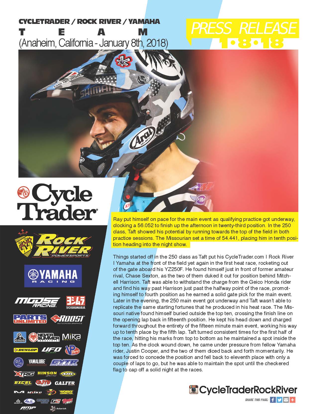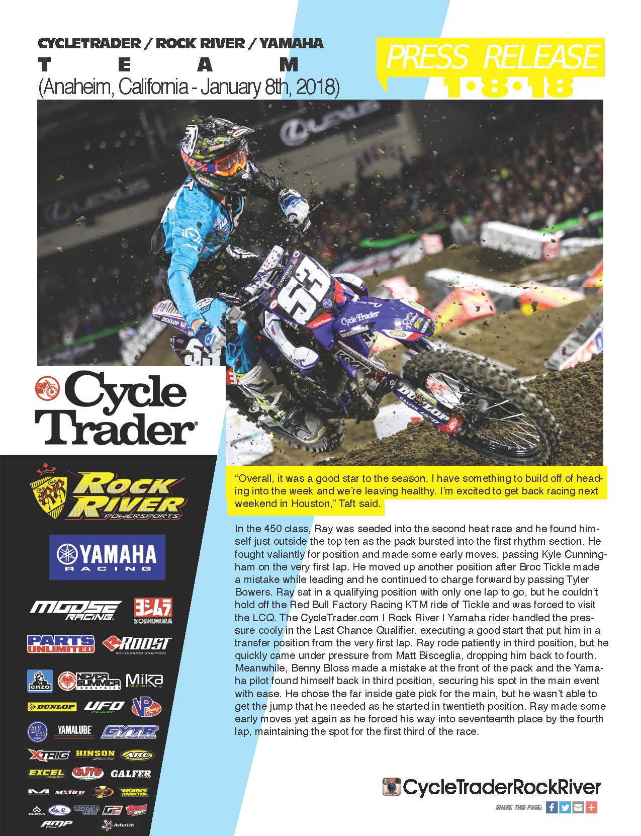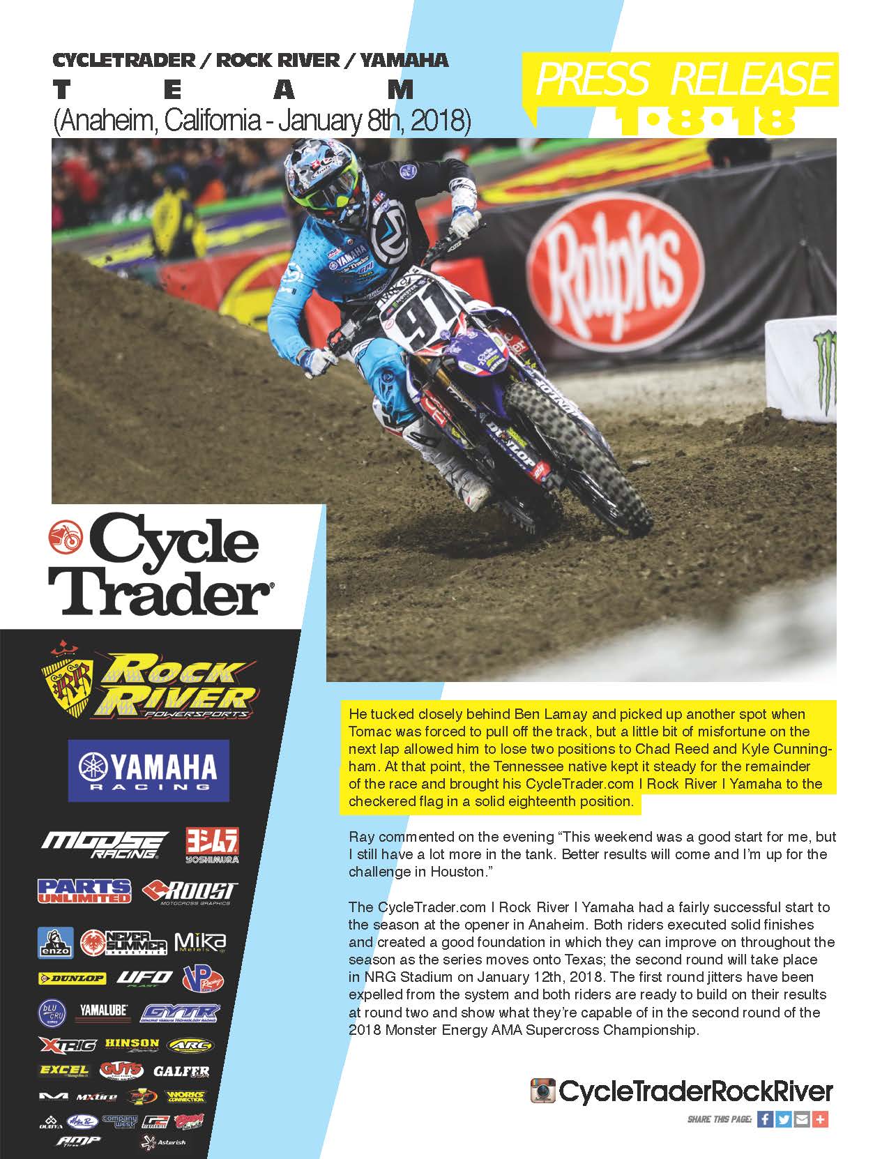 2018 Supercross season kicked off Jan. 6th in Anaheim for A1. See how CycleTrader.com/Rock River/Yamaha team faired at the opener. Read below: