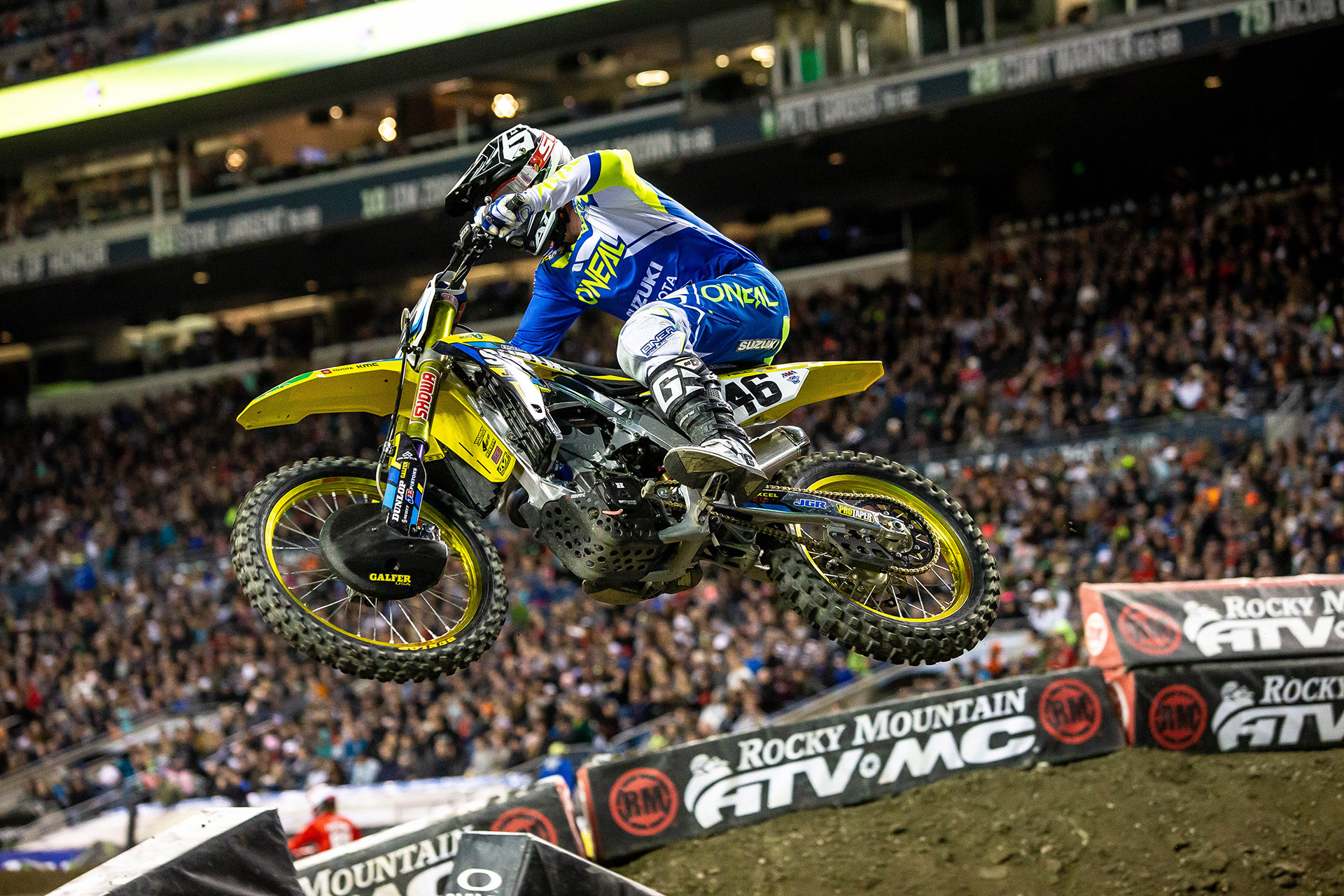 The JGRMX/Yoshimura/Suzuki Factory Racing Team was in Seattle, Washington this past weekend for round 12 of the 2019 Monster Energy Supercross Championship and the seventh stop of the 250 Western Regional Supercross Series. It was a night of highs and lows for the team; Suzuki RM-Z250 rider Jimmy Decotis added to his strong podium streak with a third-place finish while RM-Z450 fan-favorite Chad Reed put his season on-hold after a bad crash in the main.