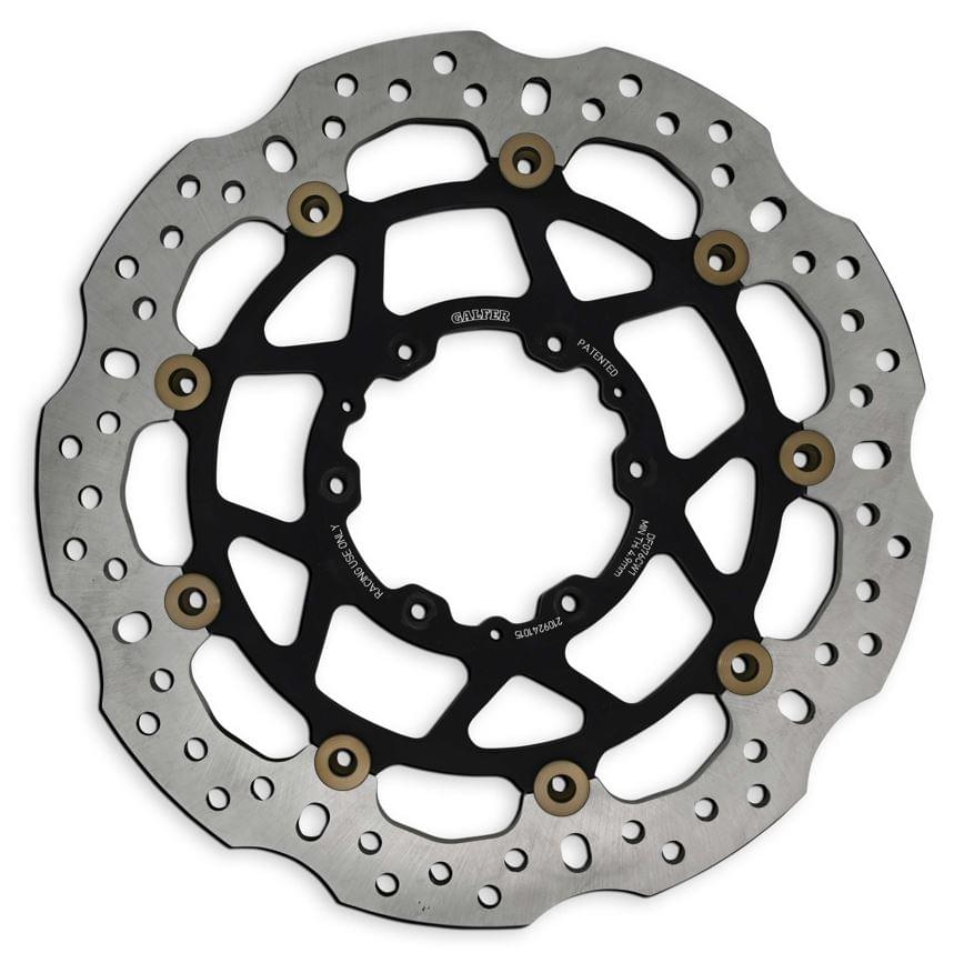 The same race rotor used by Galfer USA race teams is now available to the public! This Galfer USA ® rotor is a WSSP WSB race spec rotor. Full floating to ensure optimum brake pad-to-rotor contact. Every high-quality Galfer-patented ® rotor is made from a proprietary mix of virgin high carbon 420 stainless steel laser cut (never stamped) double disc-parallel ground to assure perfect parallel flatness and heat treated to each specific application. KBA and TUV approved. Seamlessly replaces stock rotor. Full instructions provided along with any technical help needed! Precision made in our Galfer factory in Spain.