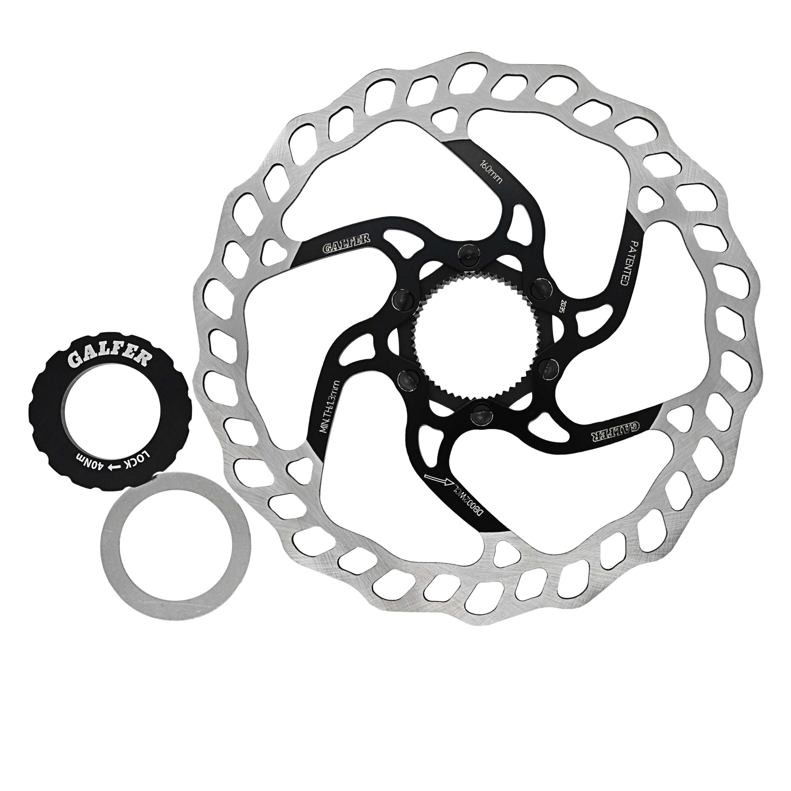 160mm center lock Galfer USA rotor for mountain biking. Every high-quality Galfer-patented ® rotor is made from a proprietary mix of virgin high carbon 420 stainless steel laser cut (never stamped) double disc-parallel ground to assure perfect parallel flatness and heat treated to each specific application. Seamlessly replaces stock rotor. Full instructions provided along with any technical help needed! Precision made in our Galfer factory in Spain. Not compatible with Fulcrum AFS System