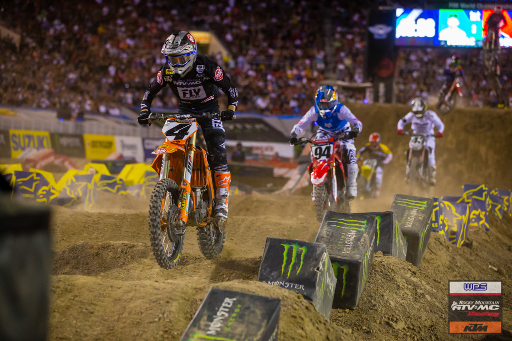 Team Rocky Mountain ATV/MC -KTM-WPS traveled to the desert city of Las Vegas, NV for the 17th and final round of the 2019 AMA Supercross season this past Saturday night. With the bikes sporting special HBD MotoGrafx Vegas inspired graphics, Blake Baggett and Justin Bogle ended the season with top ten finishes.